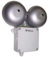 Dzwonek DW jest dzwonkiem elektromechanicznym posiadającym dwie czasze aluminiowe lakierowane o średnicy 130 mm.